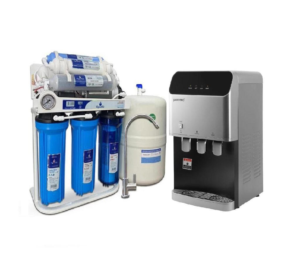 احصل على مياه نقية 100٪ في منزلك مع جهاز تحلية مياه 9 مراحل RO مع برادة بيورينا.