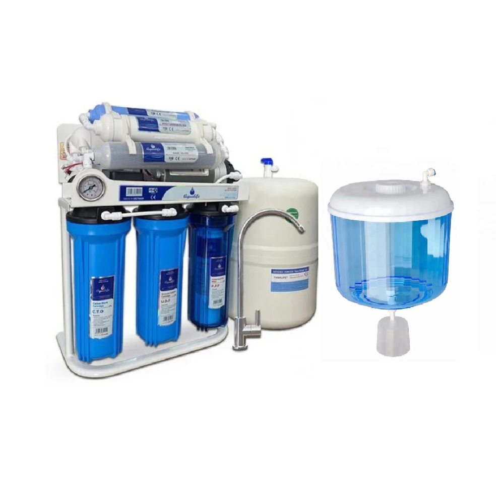 جهاز تحلية فيتنامي 7 مراحل مع قاعدة و ساعة ضغط مع برادة مياه بيورينا الفاخرة