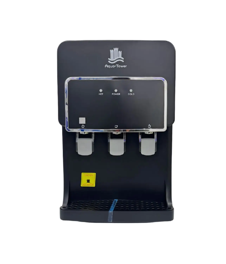 برادة ماء بخزان داخلي و3 حنفيات (بارد – حار – عادي) بتصميم طاولة عملي ولون أسود أنيق. مناسبة للمنازل والمكاتب، حجمها موفّر للمساحة وأداؤها ثابت للاستخدام اليومي.